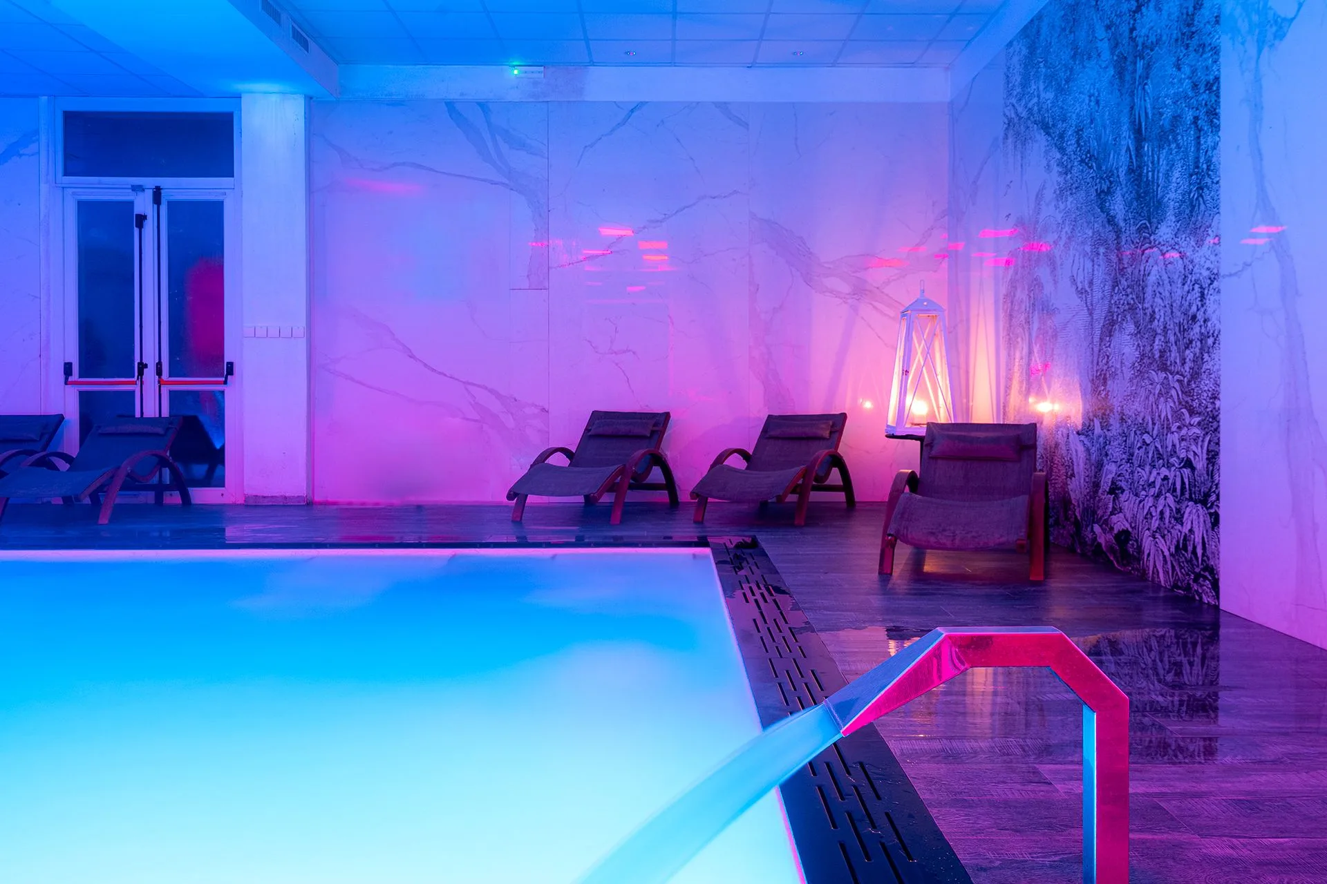 Idromassaggio, 2 geyser, bagno turco, sauna, doccie emozionali, ice fall, area relax e musico terapia