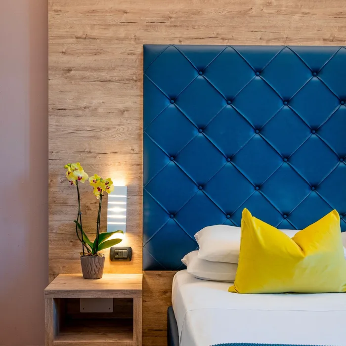 Un’esperienza preziosa di riposo e benessere. Le camere di tipologia Puravita Premium possono essere doppie, matrimoniali o per uso Singola. L’arredamento di design guarda al comfort e avvolge con materiali morbidi come le testate imbottite dei letti, e naturali come la boiserie alle pareti. Alcune Camere Puravita Premium sono dotate di bagno con doccia idromassaggio e cromoterapia.